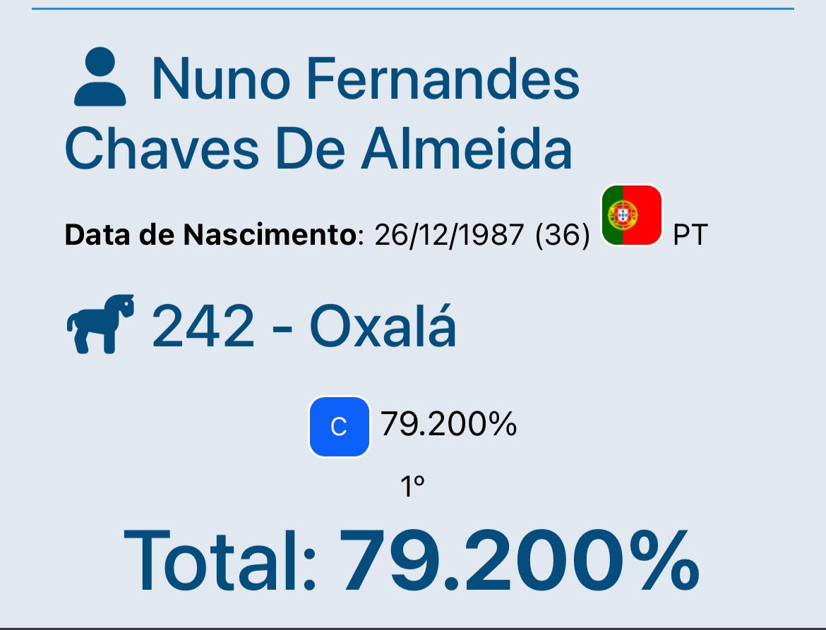 Excellent character; Excellent rideability; Magnificent natural gaits (8.5 walk, 8 trot and 8 canter). Portuguese Vice-Champion 2025 (7 Years)